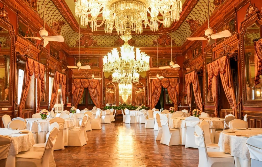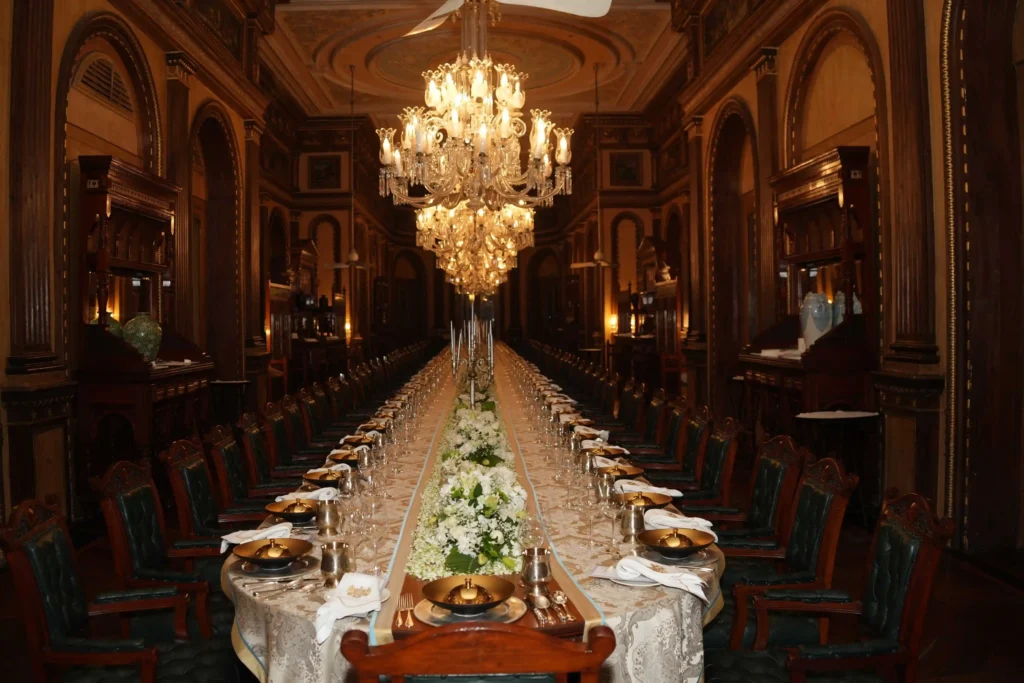 Many of Hyderabad’s most iconic dishes originate in palace kitchens. Dum pukht cooking techniques, elaborate kebabs, and luxurious gravies define the aristocratic cuisine once served to the Nizam’s court. Restaurants such as Adaa at Taj Falaknuma Palace preserve these traditions in spectacular historic settings.